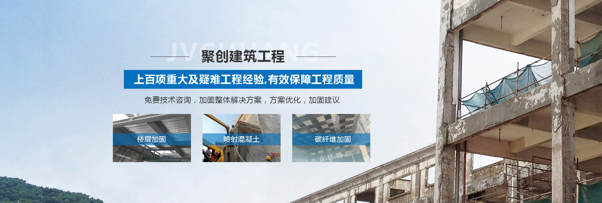 山西聚創(chuàng)建筑工程技術(shù)有限公司是一家涉足建筑工程改造加固、基礎(chǔ)加固、樓房糾偏、橋梁結(jié)構(gòu)加固補(bǔ)強(qiáng)、鋼結(jié)構(gòu)加固與安裝、靜力切割拆除、樓房增層、抗震加固、裝飾工程、工程檢測、設(shè)計(jì)、加固材料產(chǎn)品研發(fā)和新技術(shù)推廣或技術(shù)咨詢服務(wù)型加固企業(yè)等諸多領(lǐng)域。